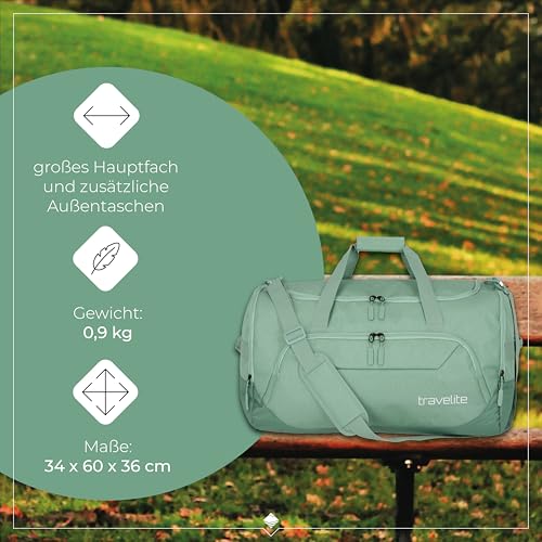 Reisetasche TRAVELITE KICK OFF, verschiedene Größen und Farben, Gr. B/H/T: 60cm x 34cm x 36cm, grün (salbei), Polyester, unifarben, Taschen, Reisegepäck Sporttasche Freizeittasche mit Aufsteckfunktion