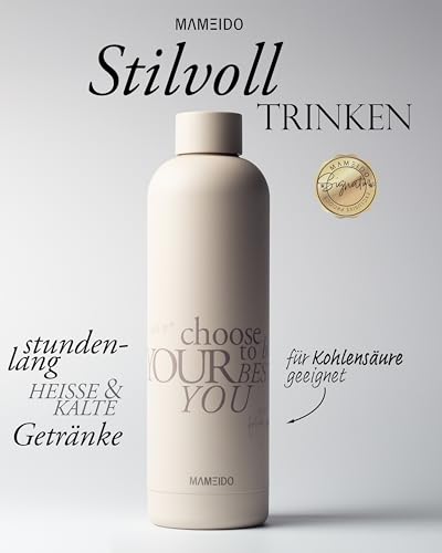 MAMEIDO Thermosflasche 750 ml, auslaufsichere Trinkflasche Edelstahl, Kohlensäure geeignet, BPA frei, Isolierflasche 12h heiß & 24h kalt (Striving Me)