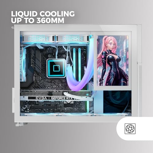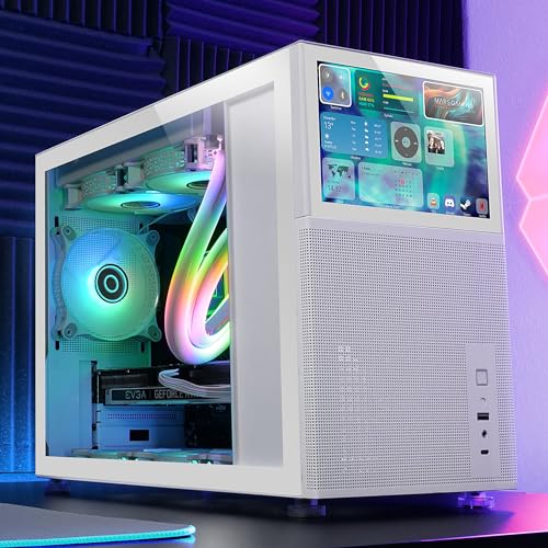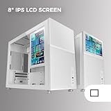 Mars Gaming MC-LCD, Kompaktes Micro-ATX PC-Gehäuse, 8" IPS LCD-Display, Seitliches, Oberes und Vorderes Mesh-Gitter, Seitenfenster Gehärtetem Glas, Mini-Tower Gaming Modularem Panel-Design, Weiß