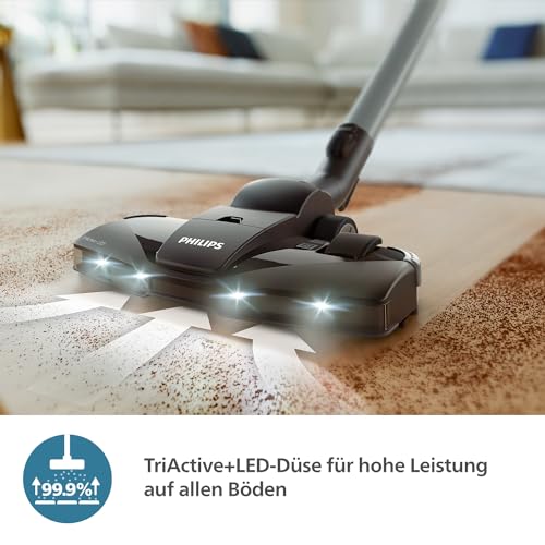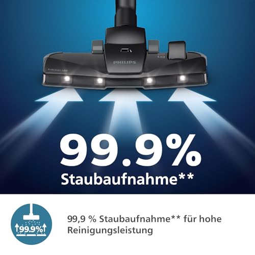 Philips 8000-Series Beutelstaubsauger Performer LED - 900 W Motor, TriActive+ LED-Düse, HEPA, 12 m, Langlebige Beutel, Deep Black (XD8122/10), Tiefschwarz