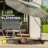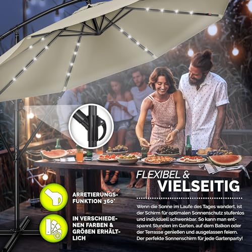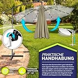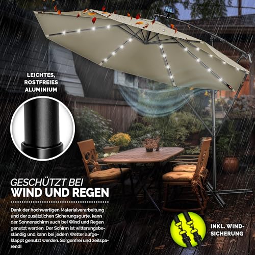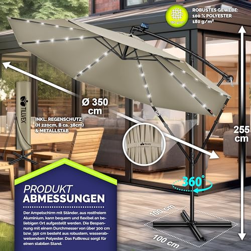 tillvex Alu Ampelschirm LED Solar Ø 350 cm mit Kurbel + Abdeckung | Sonnenschirm mit An-/Ausschalter & Windschutz | Gartenschirm UV-Schutz Aluminium | Kurbelschirm mit Ständer Marktschirm wasserdicht