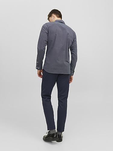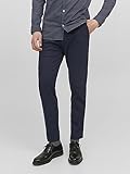 Chinohose JACK & JONES JPSTMARCO – Chinohose mit mittlerer Taille, Slim Fit, bequem, Herren, Gr. 30, Länge 34, blau (navy blazer), Web, Obermaterial: 52% Polyester, 21% Nylon, 17% Viskose, 10% Elasthan, unifarben, slim fit normal, Hosen, unifarben, modisch, slim fit, Web