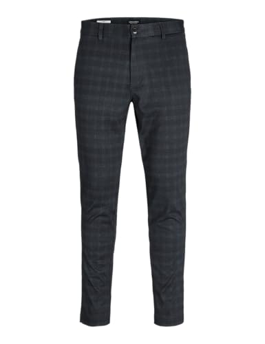 Chinohose JACK & JONES JPSTMARCO – Chinohose mit mittlerer Taille, Slim Fit, bequem, Herren, Gr. 29, Länge 30, blau (navy blazer), Web, Obermaterial: 52% Polyester, 21% Nylon, 17% Viskose, 10% Elasthan, unifarben, slim fit normal, Hosen Chinohose, unifa