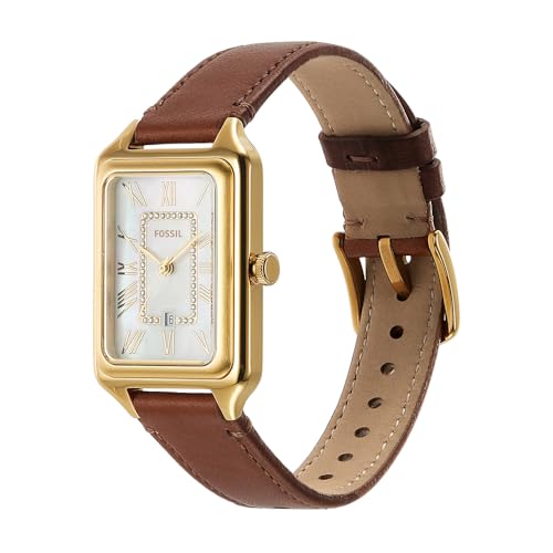 Quarzuhr FOSSIL RAQUEL, braun, Armbanduhren, Damen, Quarzuhr, Armbanduhr, Damenuhr, Perlmutt-Zifferblatt, Datum, Lederarmband