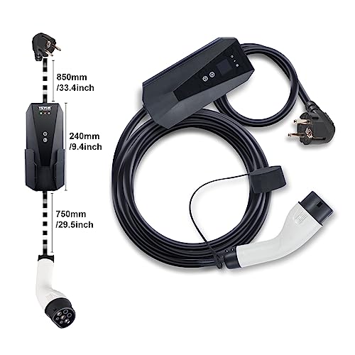 VEVOR Tragbares EV-Ladegerät 3,68 kW Ladegerät für Elektrofahrzeuge EV-Ladekabel Typ 2(IEC62196) CEE 7/7 Stecker 8-16A 1-Phasig EV-Ladestation 8,6m Kabellänge IP66 Wasserdicht Wallbox
