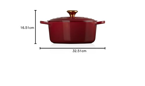 Hagen Grote Le Creuset Gusseisen-Bräter rund 4,2 l - für alle Herdarten inkl. Induktion, spülmaschinenfest, 32,5 x 24 x 16,5 cm, kratzfest emailliert, Bordeaux