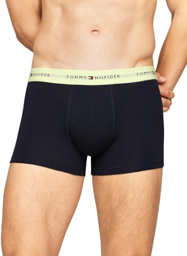 Tommy Hilfiger Herren 3er Pack Boxershorts Trunks mit Logobund, Mehrfarbig (Stonewash Green/Faded Lime/Col Blue), S-M