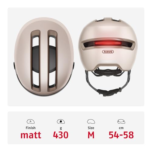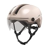 ABUS Stadthelm HUD-Y ACE - stylischer Fahrradhelm mit Visier und magnetischem, aufladbarem LED-Rücklicht - für Damen und Herren - Beige, Größe M