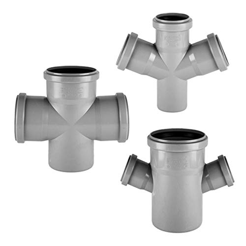 HT Doppelabzweig 67° Grad DN110 DN100 mit Dichtung für Rohraußendurchmesser 110 mm 11 cm mit Abzweig 50 mm 5 cm DN50 Abfluss Abwasser Ablauf Abzweig Stück grau