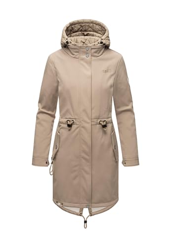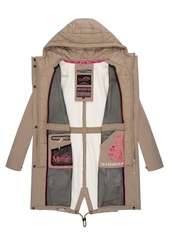 MARIKOO Damen Softshell Mantel Übergangsjacke mit Kapuze B965 [B965-Mo-Presa-Taup-Grey-Gr.XXL]