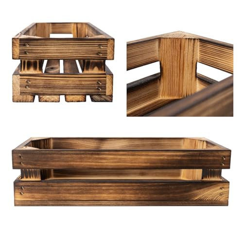 Creative Deco Weinkiste Holz Vintage Holzkiste | 34 x 14 x 9 cm | Geflammt Deko Holzbox | Kiste Geschenkbox Organizer Spielzeugkiste Aufbewahrungsbox Osterdeko