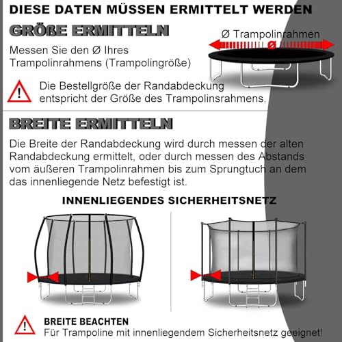 Baunsal® Trampolin Randabdeckung Ø 487 cm mit 28 cm breite in schwarz und 20 mm dick uv-beständig reißfest Trampolin Ersatzteile Trampolin Rahmenpolsterung Schutzrand für das Trampolin Outdoor