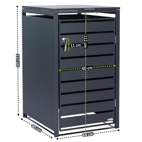 Zelsius Mülltonnenbox 1er Mülltonne | (B) 68 x (T) 80 x (H) 117 cm | Anthrazit RAL 7016 | inkl. Erweiterungsmöglichkeit | Mülltonnenverkleidung, 1 Tonne, Müllhaus, Aufbewahrungsbox