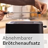 Bosch Kompakt Toaster MyMoment TAT3M123, entnehmbarer klappbarer Brötchenaufsatz, mit Auftaufunktion, Abschaltautomatik, Liftfunktion, Brotzentrierung, ideal für 2 Scheiben, 800 Watt, Schwarz matt