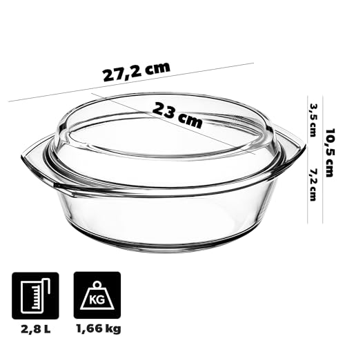 KADAX Auflaufform mit Deckel 2,8L – runde feuerfeste Glasform, hitzebeständig & wiederverwendbar – für Ofen, Mikrowelle & Aufläufe