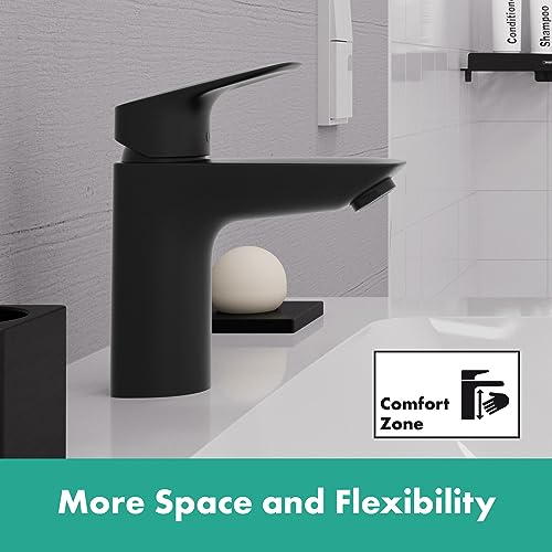 Hansgrohe Logis Waschtischmischer, ComfortZone100, ohne Ablaufgarnitur, Ausladung 108mm, 71101, Farbe: Mattschwarz