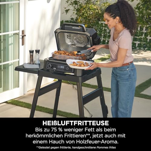 NINJA Elektrogrill Woodfire OG850EU, 1700 W, Outdoor Grill, Smoker und Heißluft-Fritteuse
