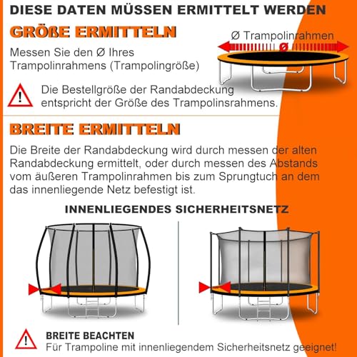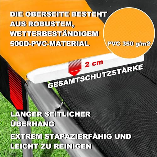 Baunsal® Trampolin Randabdeckung Ø 366 cm mit 26 cm breite in orange-schwarz und 20 mm dick uv-beständig reißfest Trampolin Ersatzteile Trampolin Schutzrand für das Trampolin Outdoor