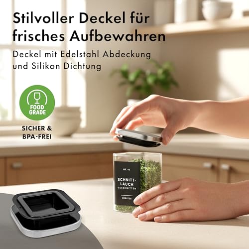 Gewürzgläser Eckig mit Edelstahl Deckel 190ml (12 Stück) - Gewürzdosen Set mit