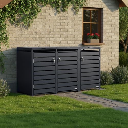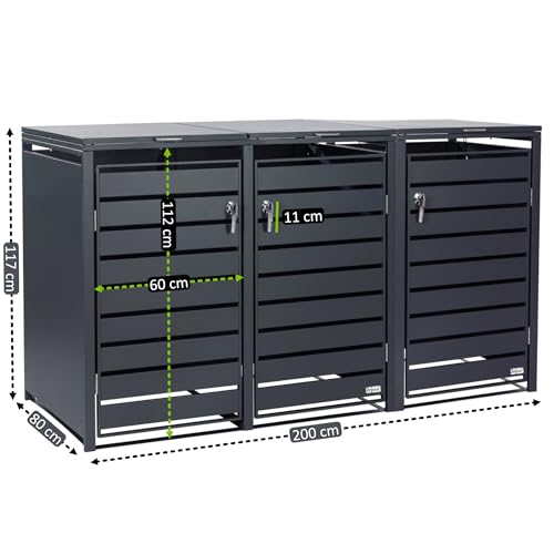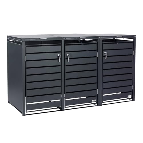 Zelsius Mülltonnenbox 3er für 3 Mülltonnen | 120-240 Liter | Anthrazit RAL 7016 | inkl. Erweiterungsmöglichkeit | Mülltonnenhäusschen, Mülleimerboxen, Aufbewahrungsbox für Mülltonnen