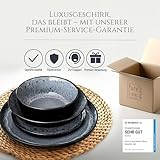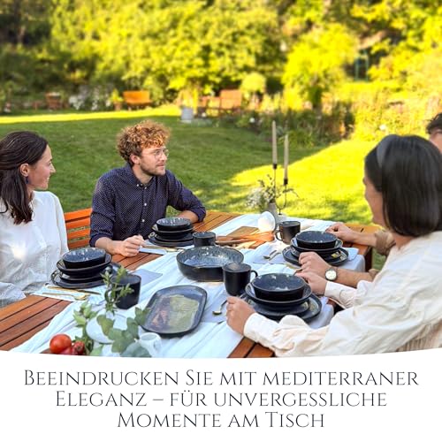 Steingut Geschirrset 6 Personen Ibiza 24 tlg. TESTSIEGER, Traumhaftes Mediterranes Steingut Geschirr Set, Schüssel- und Teller Set, Tafelservice 6 Personen, Geschirrsets Pure Living in Grau