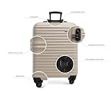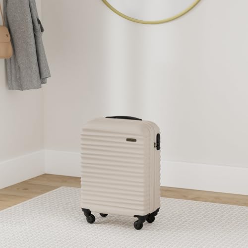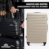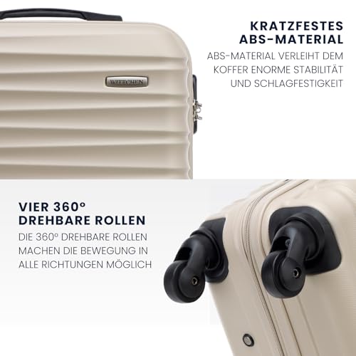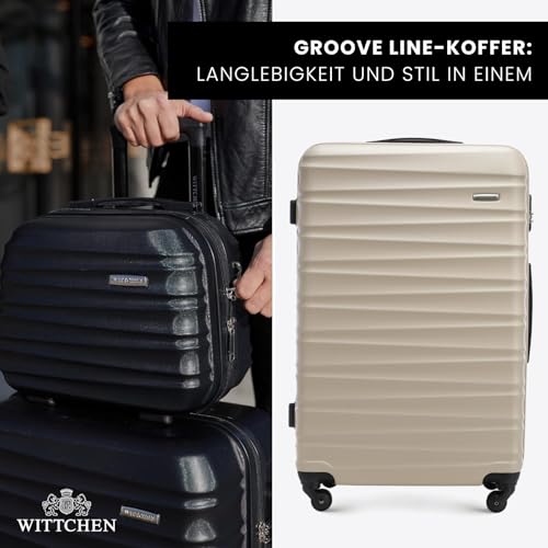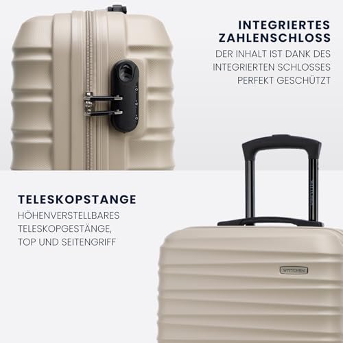 WITTCHEN Reisekoffer Handgepäck Kabinengepäck Rollkoffer Kabinenkoffer Kleiner Koffer Trolley Hartschale aus ABS 4 Spinner-Rollen Zahlenschloss Groove Line Größe S beige Lufthansa/Eurowings/Ryanair