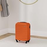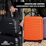 WITTCHEN Reisekoffer Handgepäck Kabinengepäck Rollkoffer Kabinenkoffer Kleiner Koffer Trolley Hartschale aus ABS 4 Spinner-Rollen Zahlenschloss Groove Line Größe S orange Lufthansa/Eurowings/Ryanair