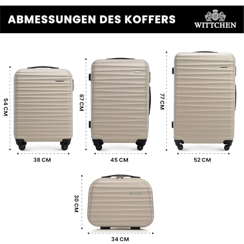 WITTCHEN Reisekoffer 4er Koffer-Set Rollkoffer Trolley Handgepäck Gepäck Reisekoffer Set Hartschale aus ABS 4 Spinner-Rollen Zahlenschloss Groove Line beige Lufthansa/Eurowings/Ryanair/Condor