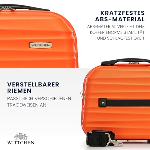 WITTCHEN Kosmetikkoffer Reisekoffer Handgepäck Kabinengepäck Rollkoffer Hartschale aus ABS Reisegepäck Kulturbeutel Kosmetiketui Kosmetiktasche Groove Line orange Lufthansa/Eurowings/Condor
