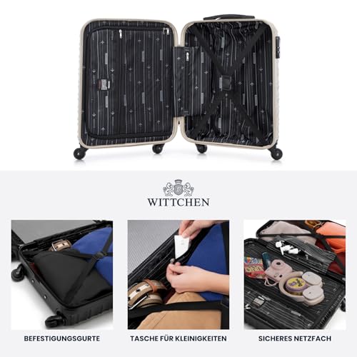 WITTCHEN Reisekoffer 3er Koffer-Set Rollkoffer Trolley Handgepäck Reisekofferset Gepäckset Hartschale aus ABS 4 Spinner-Rollen Zahlenschloss Groove Line beige Lufthansa/Eurowings/Ryanair/Condor