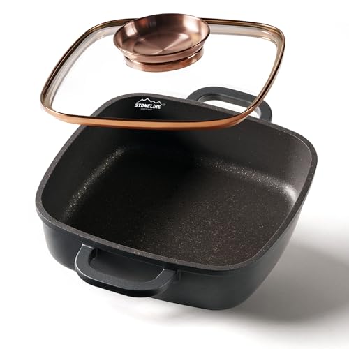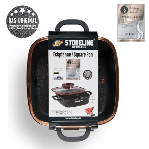 STONELINE Servierpfanne Eckig 20 cm, Eckige Pfanne Induktion mit Deckel