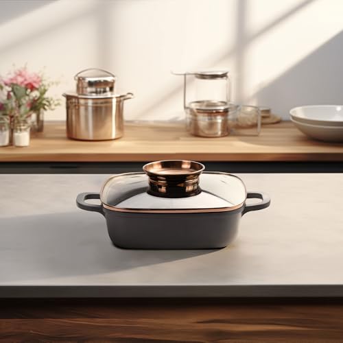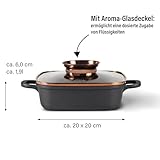 STONELINE Servierpfanne Eckig 20 cm, Eckige Pfanne Induktion mit Deckel, Aroma Funktion, Aluguss, Antihaft Pfanne Beschichtet mit echten Steinpartikeln, Für alle Herdarten, Backofen, Schwarz/Roségold