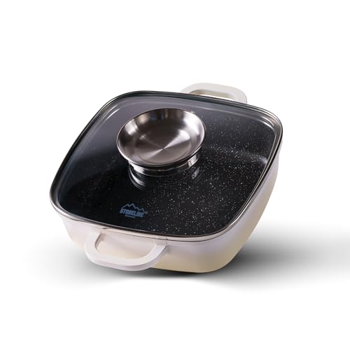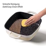 STONELINE Servierpfanne Eckig 20 cm, Eckige Pfanne Induktion mit Deckel, Aroma Funktion, Aluguss, Antihaft Pfanne Beschichtet mit echten Steinpartikeln, Für alle Herdarten, Backofen, Creme