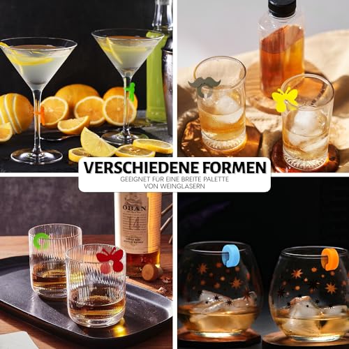 Ouprisks Glasmarkierer, 70Pcs Wiederverwendbarer Glas Markierung Trinkgläser, Glasmarker Silicon, Geeignet für Weingläser, Sektgläser, Getränkegläser, Martinigläser usw