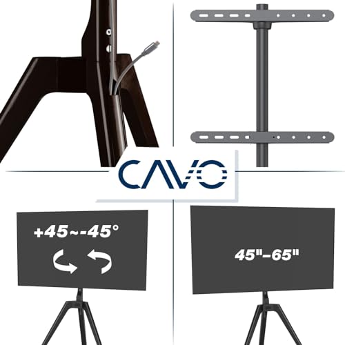 CAVO TV-Staffelei für 45 bis 65 Zoll Bildschirme bis 40 kg, Walnuss schwarz lackiert, Max VESA 400 x 400 mm Schwenkbar Universal Halterung für Flach & Curved Fernseher & Monitor