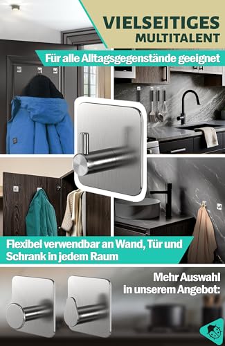 Menz Handtuchhalter ohne Bohren – 6 Stück Edelstahl Haken selbstklebend mit 3M