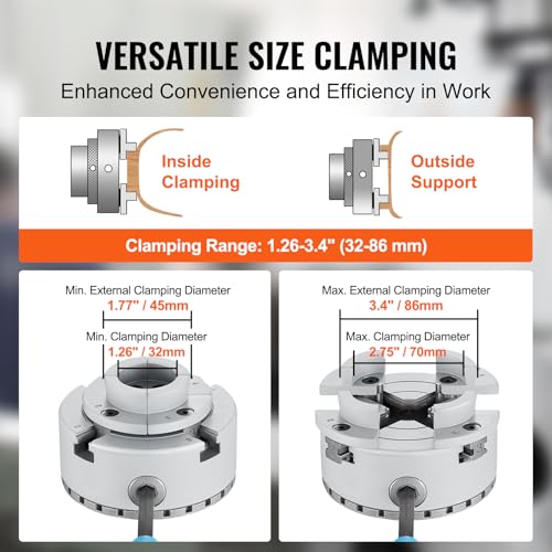 VEVOR KP96 Drehbankfutter 4-Backen φ96mm Backenfutter aus 45# Klemmbereich 32–70mm Spannfutter-Innengewinde M33 x 3,5 TPI Drehbank Ausrichtungsgenauigkeit ≤0,3mm Drechselfutter Drehmaschinenfutter