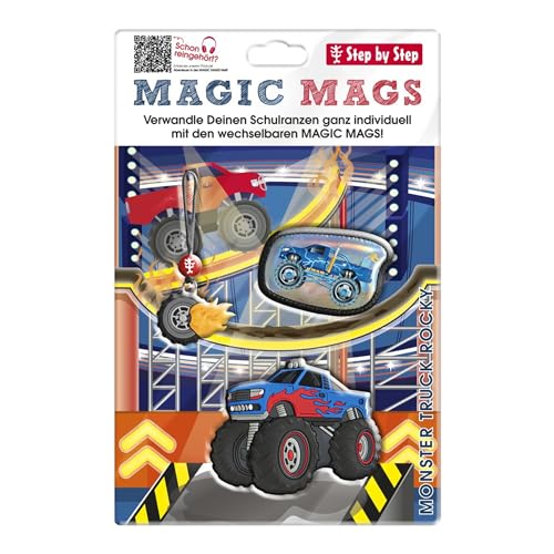 Step by Step Magic MAGS Monster Truck Rocky, 3-teilig, 2 Magnet-Applikationen und 1 Anhänger, als Ergänzung für den Schulranzen oder Vorschulrucksack