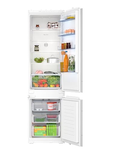 Bosch KIN96NSE0 Serie 2 Einbau-Kühl-Gefrier-Kombination, 194 x 56 cm Nische, 215 L Kühlen & 75 L Gefrieren, 11 Prozent mehr Kühlvolumen, nie wieder abtauen, gleichmäßige Ausleuchtung