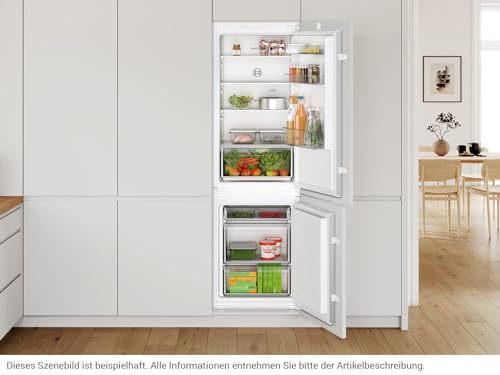 Bosch KIV86NSE0 Serie 2 Einbau-Kühl-Gefrier-Kombination, 177,5 x 56 cm Nische, 183 L Kühlen & 84 L Gefrieren, umweltfreundliche Luftzirkulation, gleichmäßige Ausleuchtung
