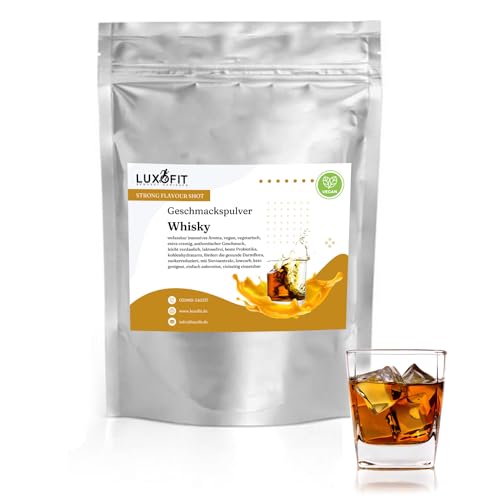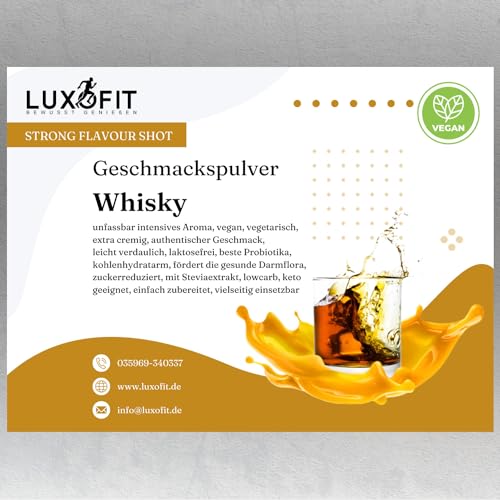 Luxofit STRONG FLAVOUR SHOT Kalorienarmes Geschmackspulver vielseitig einsetzbar für Lebensmittel, Vegan, Zuckerreduziert, Geschmacksvielfalt, Aromatisches Pulver (Whiskey)