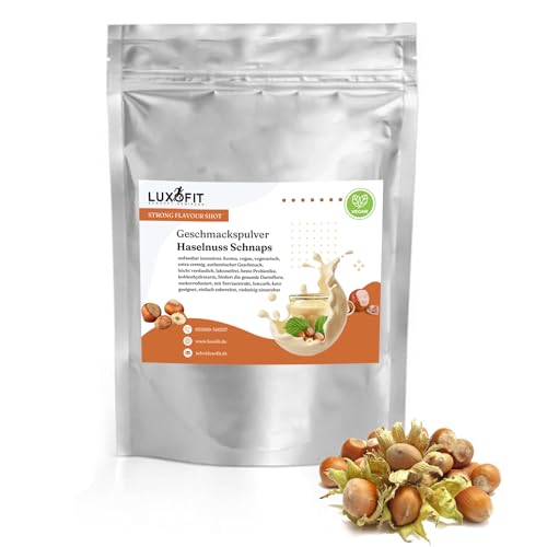 Luxofit STRONG FLAVOUR SHOT Kalorienarmes Geschmackspulver vielseitig einsetzbar für Lebensmittel, Vegan, Zuckerreduziert, Geschmacksvielfalt, Aromatisches Pulver (Haselnussschnaps)