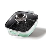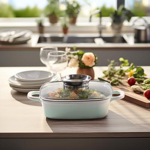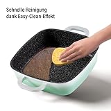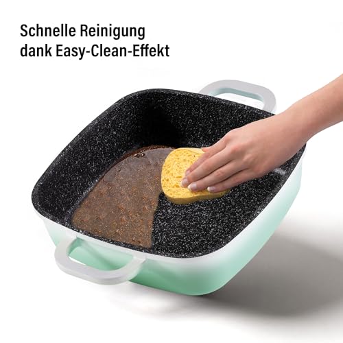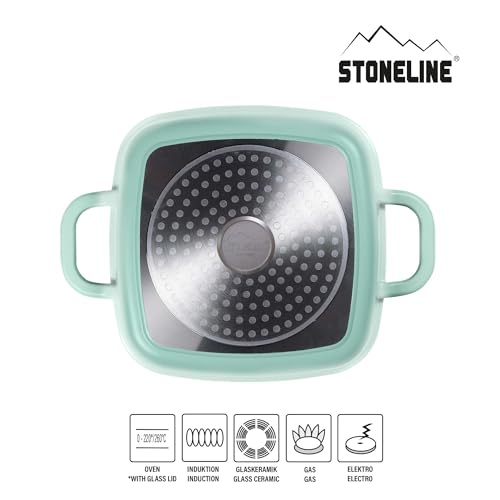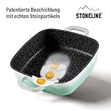 STONELINE Servierpfanne Eckig 20 cm, Eckige Pfanne Induktion mit Deckel, Aroma Funktion, Aluguss, Antihaft Pfanne Beschichtet mit echten Steinpartikeln, Für alle Herdarten, Backofen, Mint