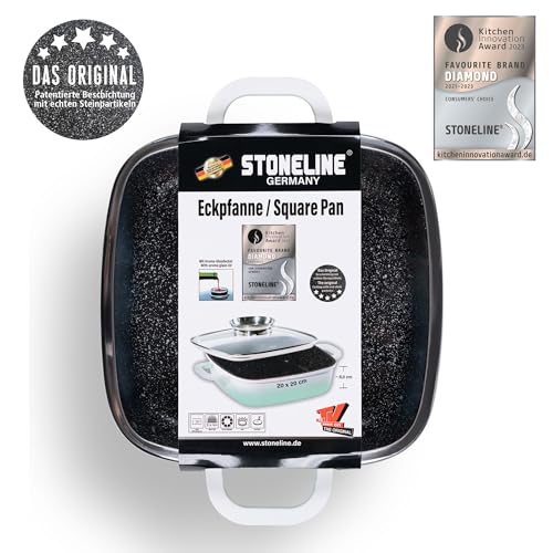 STONELINE Servierpfanne Eckig 20 cm, Eckige Pfanne Induktion mit Deckel