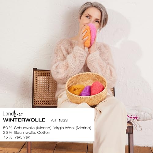LANA GROSSA Landlust Winterwolle | Soffilo mit Yakfasern | Handstrickgarn aus 50% Schurwolle (Merino), 35% Baumwolle & 15% Yak | 50g Wolle zum Stricken & Häkeln | 70m Garn FB30