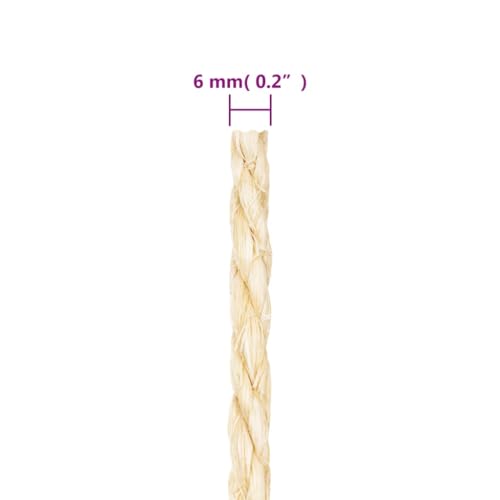 vidaXL Seil, Sisalseil mit hoher Reiß- und Abriebfestigkeit, Hanfseil Schnur für Kratzmöbel Garten, Tauseil Gartenseil Dekoseil, 6 mm 50 m 100% Sisal