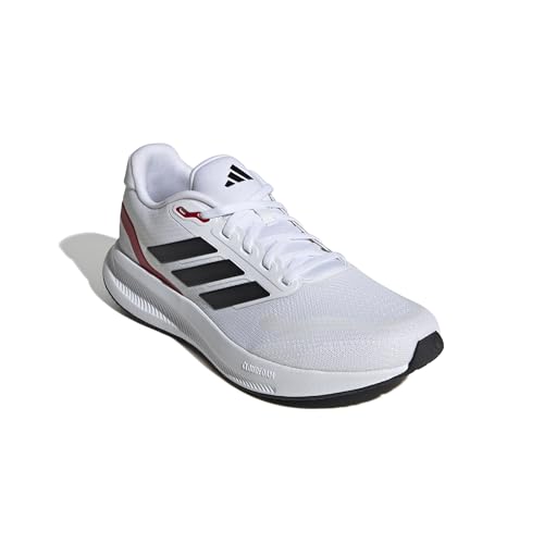 adidas Run Falcon 5 Herren-Sneaker, Weiß/Schwarz/Better Scarlet, 8 Wide