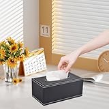 XNONE Leder Taschentücher Box Rechteckig Kosmetiktücher,Taschentuchspender Halter,Taschentücher Boxes Serviette Tissue Box Holder für Kommode Badezimmer Autos Büro Dekor,Schwarz