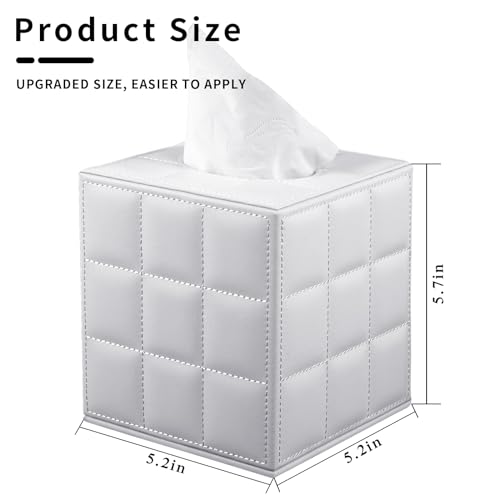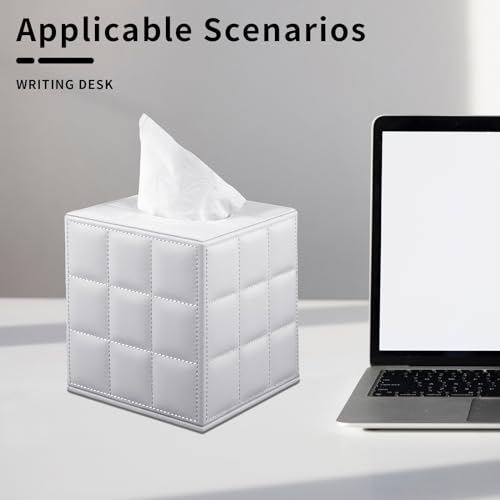 XNONE Leder Taschentuchbox Quadratisch Kosmetiktücher,Tissue Box Organizer,Taschentuchspender Halter Tissue Box Holder für Kommode Badezimmer Autos Büro Deko,Weiß
