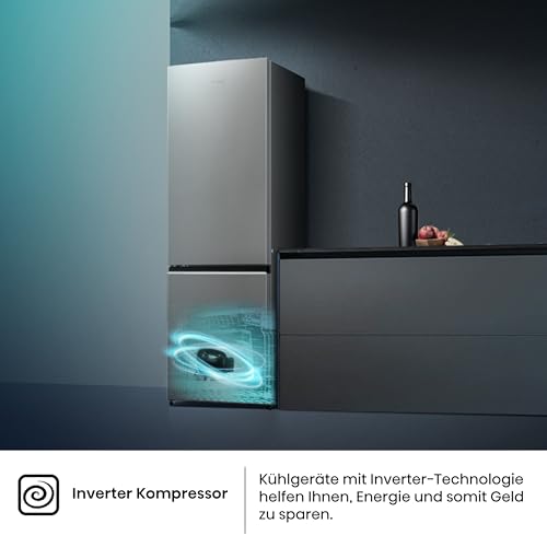 Hisense RB440N4ACA Kühl-Gefrier-Kombination/Höhe 201 cm/Kühlen 178 L/Gefrieren 98 L/LED Beleuchtung, Edelstahl